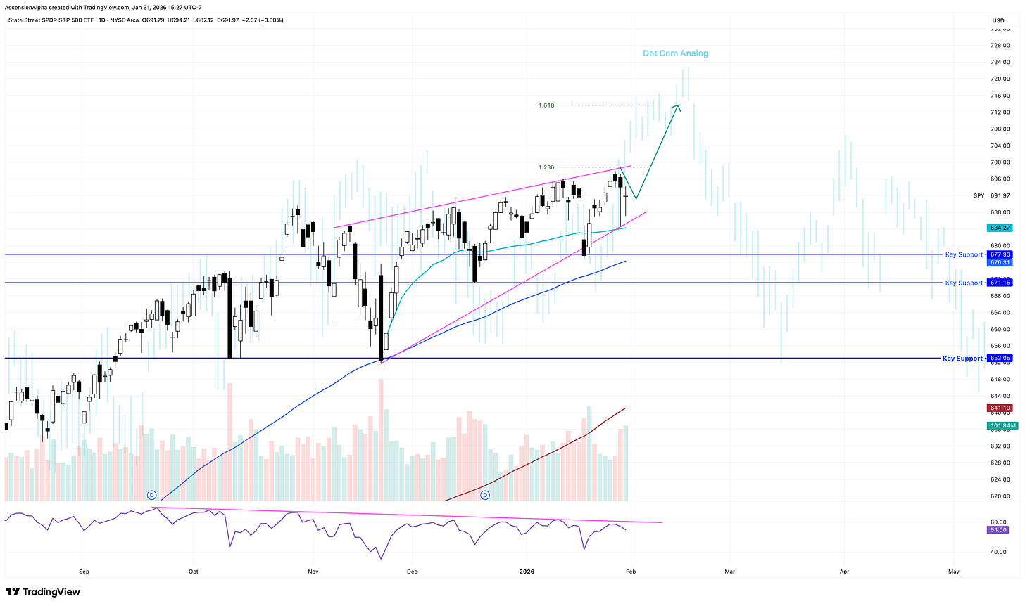 Yes, it’s entirely possible we make another high and print another bullish candle in February. But if we reach key targets and Fibonacci extensions, that would likely mark the end of a historically strong bull run and set the stage for a larger correction.