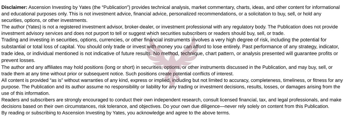 The bullish run has been impressive, but it’s starting to feel tired. Monthly bull candles are still forming, but they’re smaller and more muted, lacking the momentum and exuberance we saw last year. When you combine that with months-long bearish divergence, the dot-com analog, continued underperformance from the Magnificent Seven, topping behavior in the big banks, and several other factors I’ve been tracking and discussing, the market appears increasingly primed for some kind of pullback.