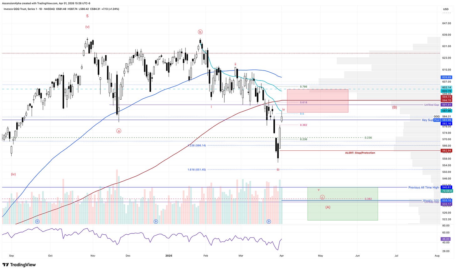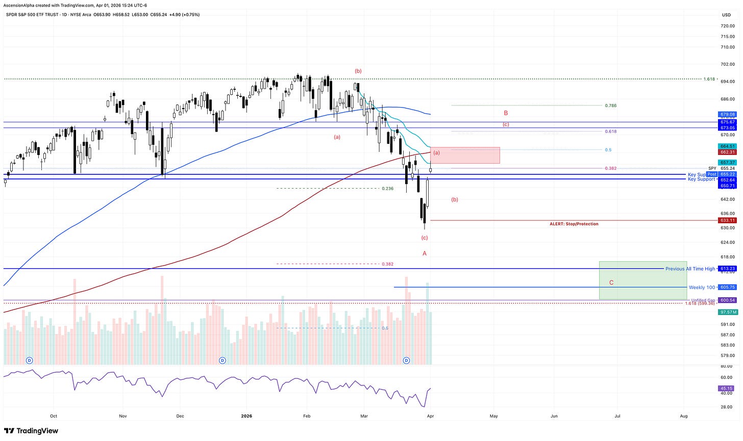 Note: I’m writing this before Trump’s big April Fools speech this evening. I expect his comments will generally lean toward the idea that the war is winding down, which should be market-friendly in the short term. That said, in this environment, one tweet or sentence can override any chart or level.