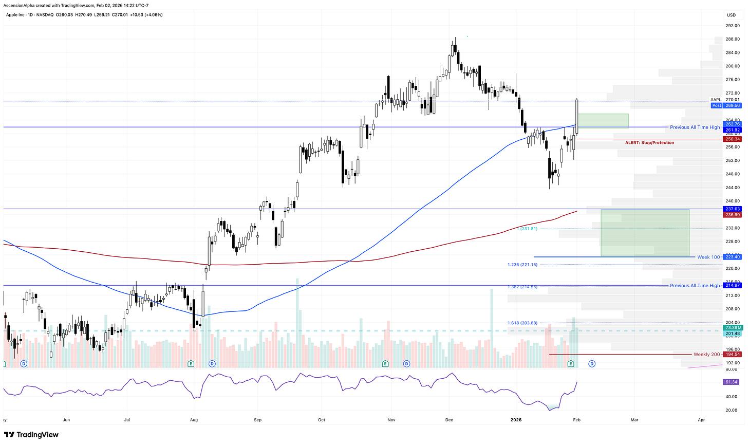 AAPL had an impressive move on Monday as investors digested just how strong its earnings were. The company posted its best quarter ever, with $143.8 billion in revenue, up 16% year over year — an incredible number at that scale. Demand for the iPhone 17 remains strong, and the recent selloff proved to be a buying opportunity. While price didn’t quite reach the 200-day SMA, which was my ultimate downside target, the stock did pull back roughly 16%, which is very much in line with prior corrections following new all-time highs. That said, another wave lower is still possible, and we would get confirmation if price closes below Monday’s candle in the near term.