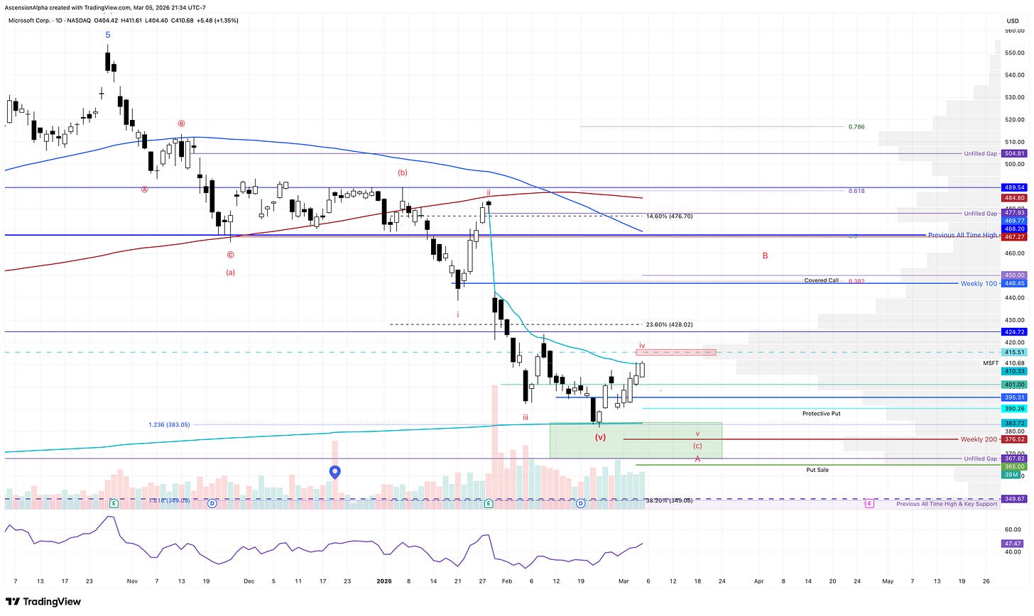 Whether it sees one more low or not, I think it is fairly close to the end of a major correction and should see a decent bounce, at least into the underside of the 100 week SMA before any further weakness comes in, perhaps back toward the $350 region or lower. We have seen this play out recently in some of the cybersecurity names like PANW and CRWD, and even PLTR, which have all had substantial moves off their lows in recent weeks after we highlighted them.