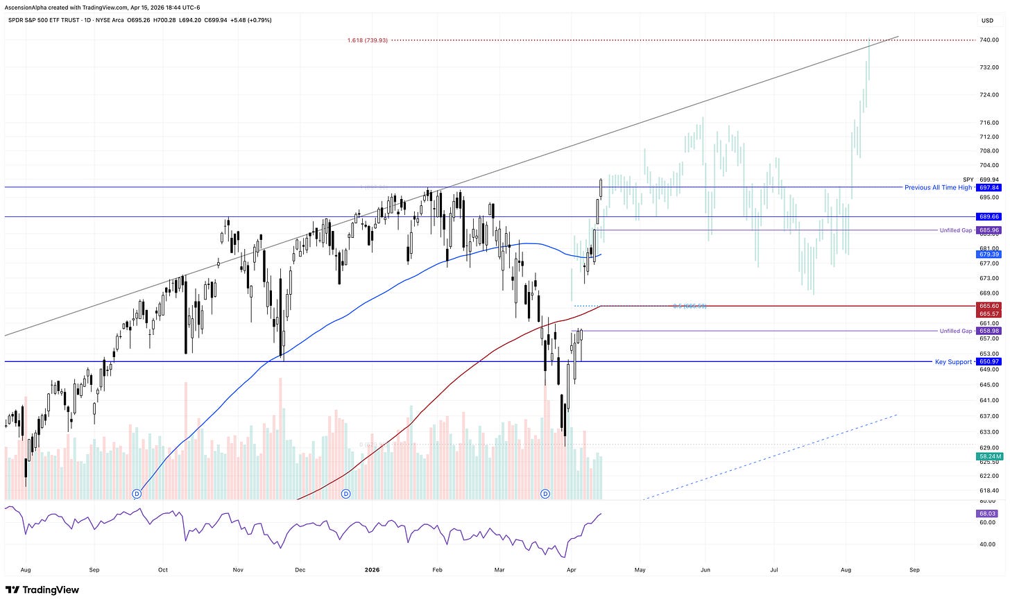 Ideally, I’d like to see a pullback toward the $690 area or a gap fill closer to $685, where the risk-to-reward setup becomes far more attractive. However, if we continue screaming higher that level will trail up.
