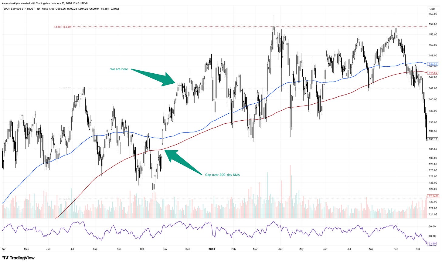 Even if it has, we’ll have clear signals. A decisive break below the 100-day SMA would be the first real warning sign, just like we saw with Bitcoin on October 6th when it pushed to all time highs highs and immediately lost the key levels.