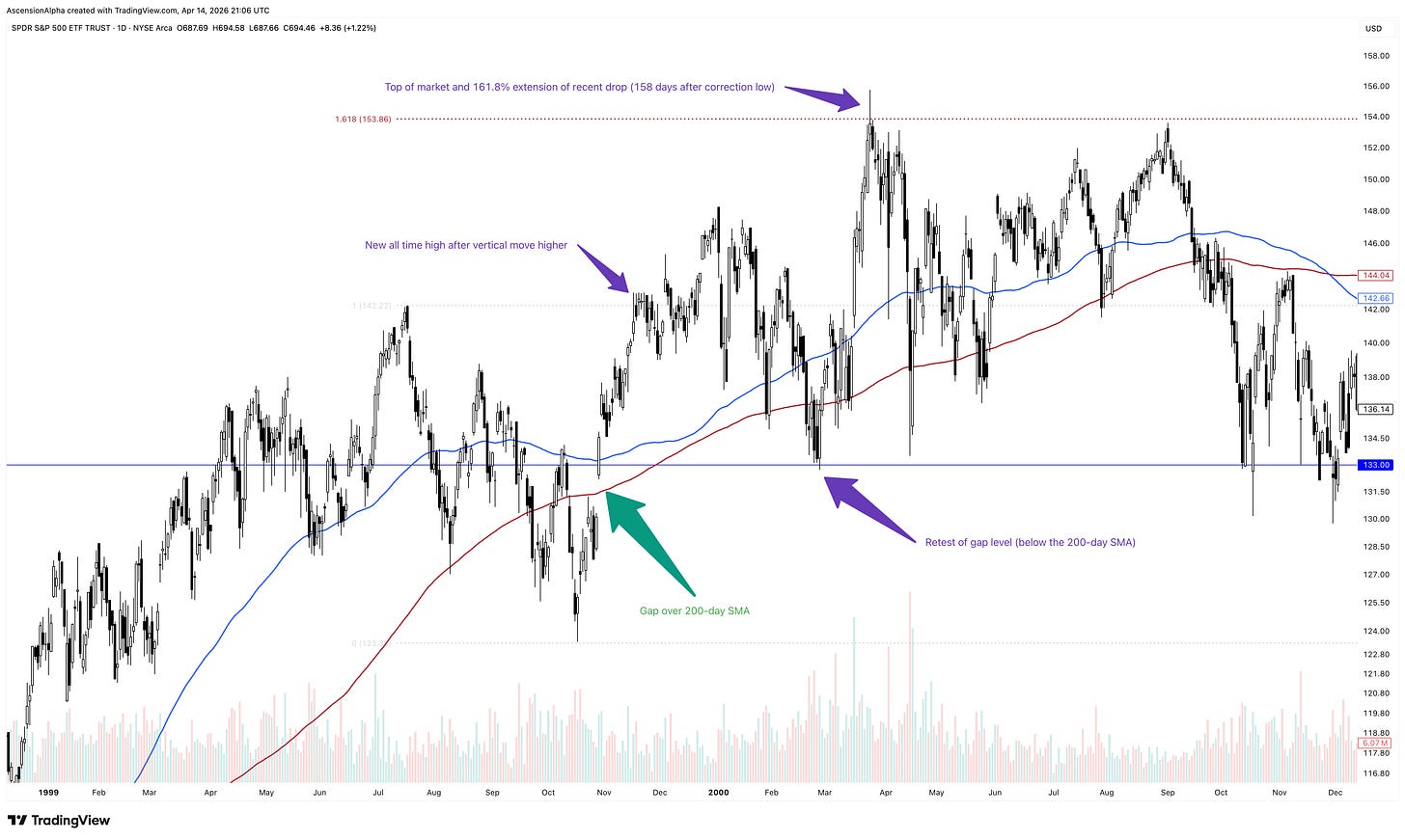 That’s the job as traders. We follow price, not predictions. We adapt when the market proves us wrong, and we focus on high-probability setups with strong risk-to-reward. Historical analogs are a tool I love to use, but they are not a guarantee. They work until they fail, just like anything else. In this case, the 1999 comparison helped highlight what was possible. While many traders were surprised and caught off guard by the strength of this move, it’s actually tracking very closely to the 1999 analog highlighted over a week ago. It helped set my expectations that price could continue higher without a full retest of the gap and push to new all time highs in short order, even though that was not what I thought was likely just one day before.