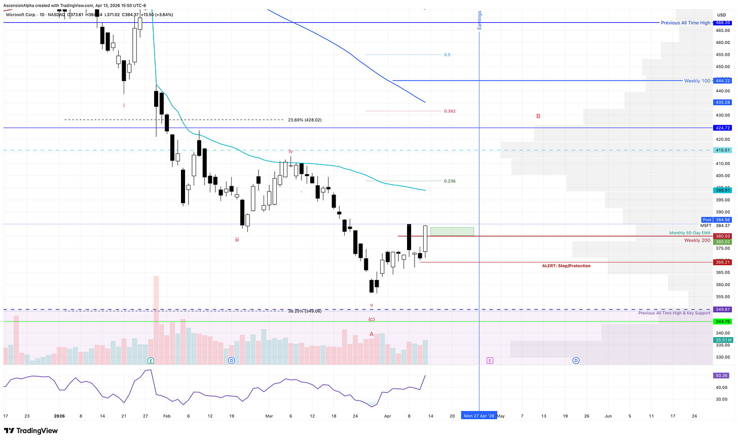 With a close back above that level, I think MSFT has a nice path higher into earnings, with a move back toward $400 and beyond very much in play. If this is a B-wave rally, a push toward the 100-week SMA (roughly a 50% retracement of the entire downtrend) isn’t out of the question. And if this turns out to be the bottom, then all-time highs become the bigger-picture target.
