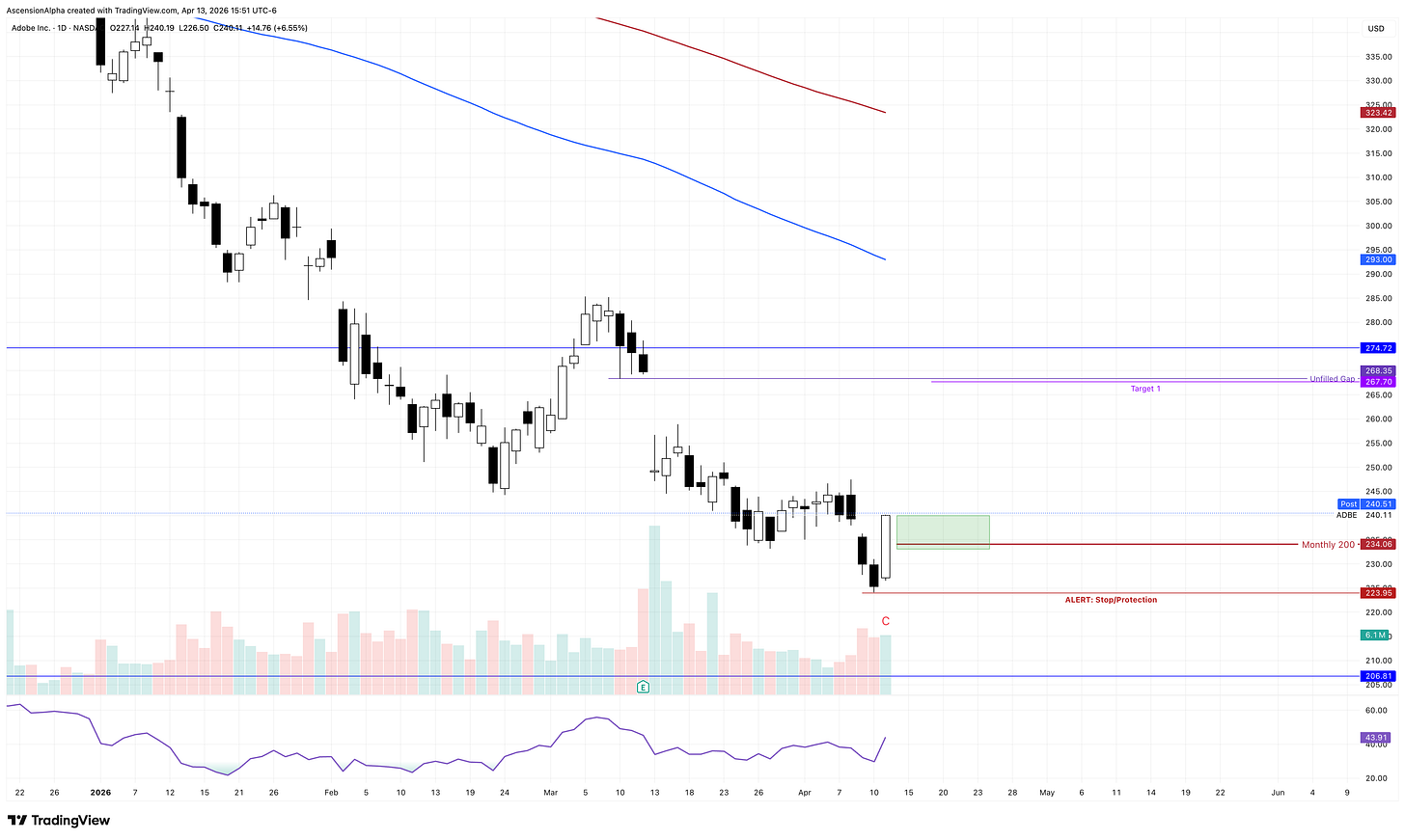 I’ve featured Adobe before, and it’s finally delivering the setup I’ve been waiting for. Price held the 200-month SMA, with Monday’s candle closing back above that level while also reclaiming two prior bearish candles in the process. I initiated a position intraday on Monday and will look to add on any retest of the 200-month SMA or Monday’s range, while keeping my stop below Friday’s low.