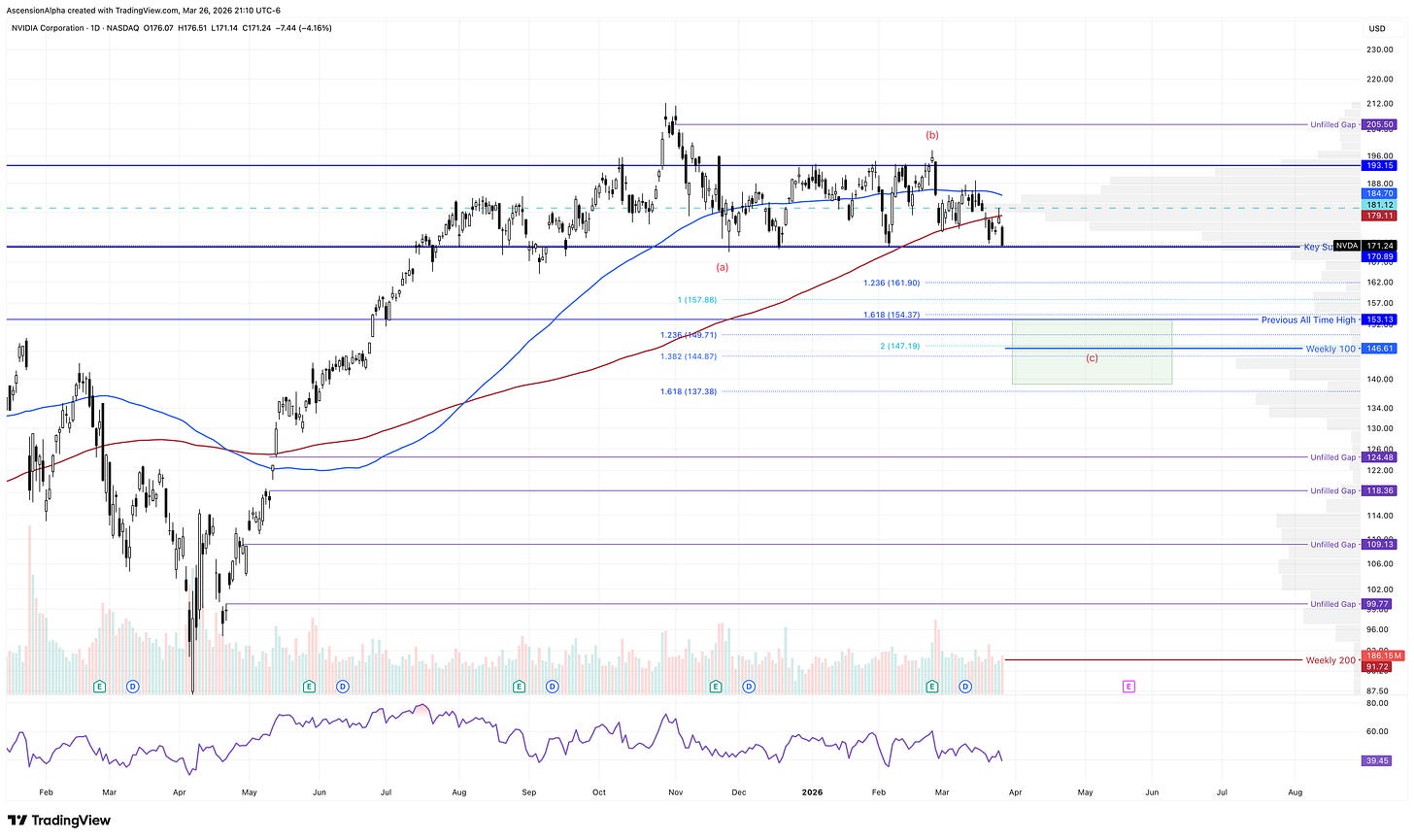 At roughly 43% of the QQQ and 32% of the SPY, what these Tech Titans do next matters enormously. Without strength from this group, a sustainable return to the bull market is impossible. This is precisely why I track these names so closely.