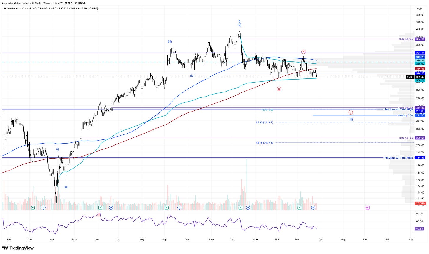 TSLA has also broken below its 200-day SMA and looks like it is headed toward lower support around $339 before any major level comes into play. I suspect the upcoming SpaceX IPO (expected in Q2) could pressure TSLA longer-term by giving investors another way to gain exposure to Elon Musk’s ecosystem.