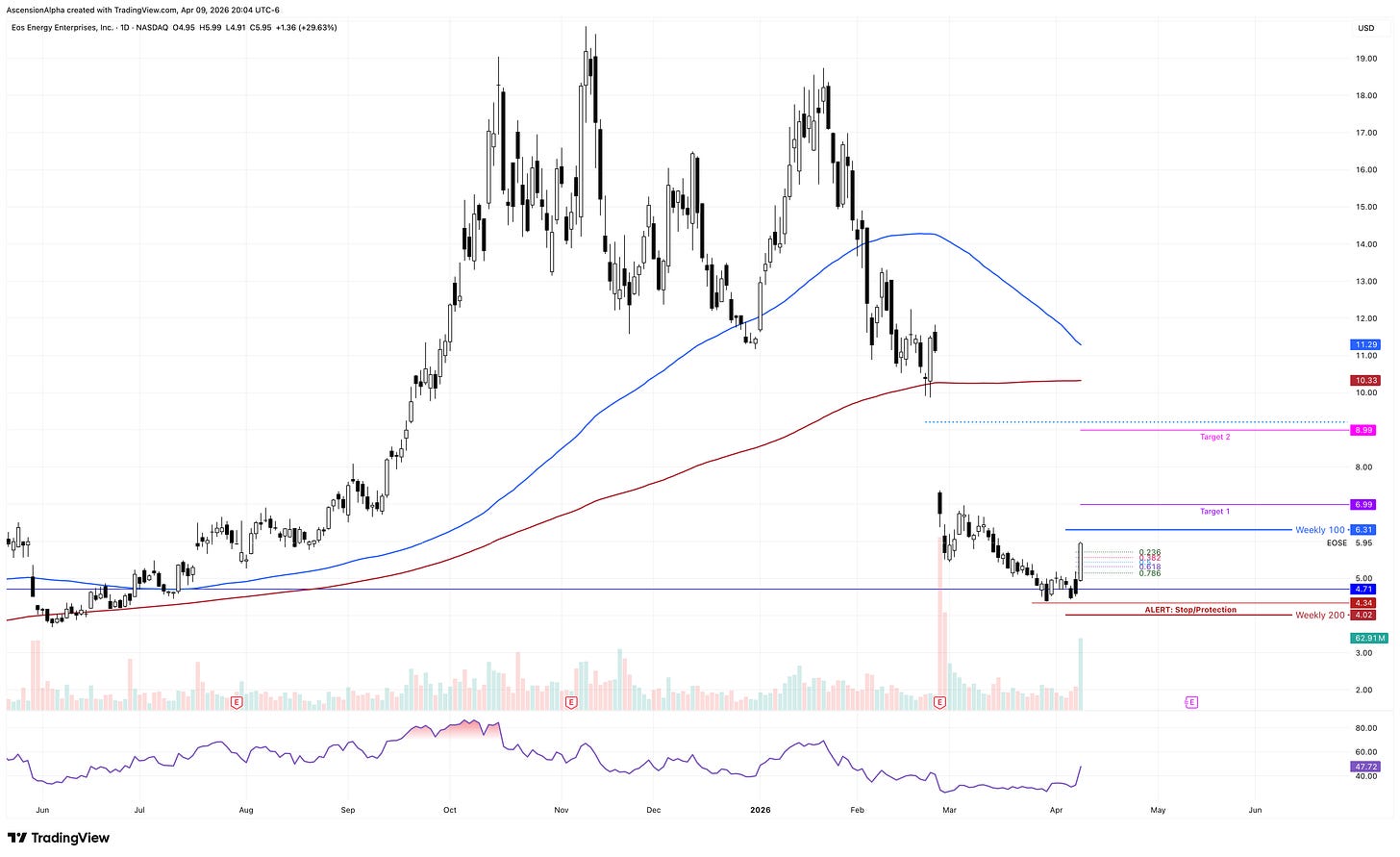 For the bottom feeders out there, this one looks interesting. EOSE printed a 29% gap-and-go candle, which is a strong reversal signal. This has the look of a potential bottom. If it pulls back and holds Thursday’s low, it could offer a solid risk/reward setup with upside toward the 100-day SMA.