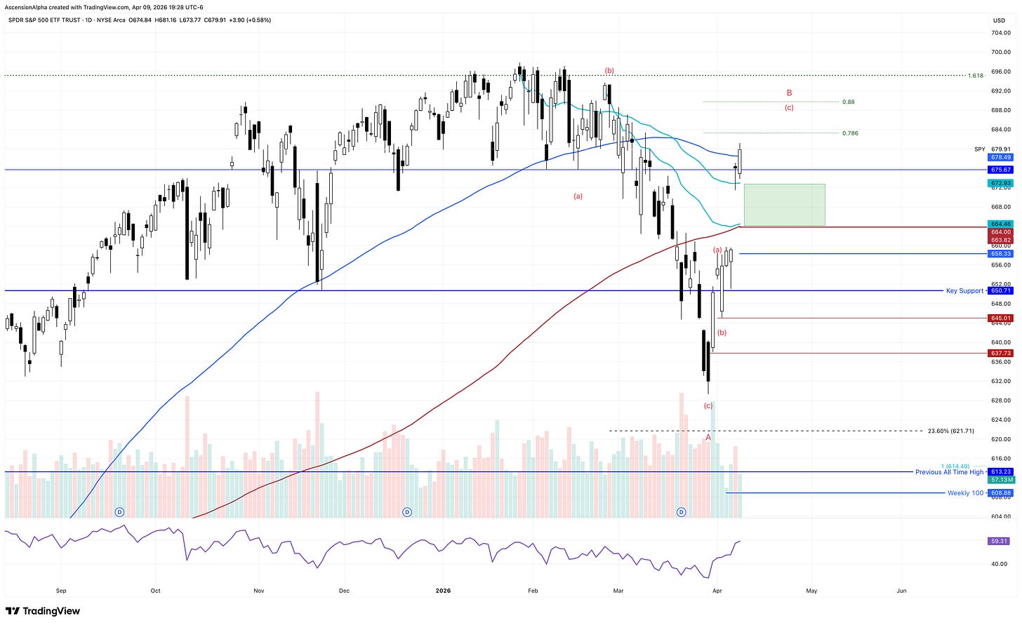 Whether this is a B wave or the start of something larger and more sustained is hard to say, but that doesn’t really impact my April thesis, which is simple: stay bullish as long as SPY and QQQ are above the 200-day SMA, and look to buy weakness in the stronger names.