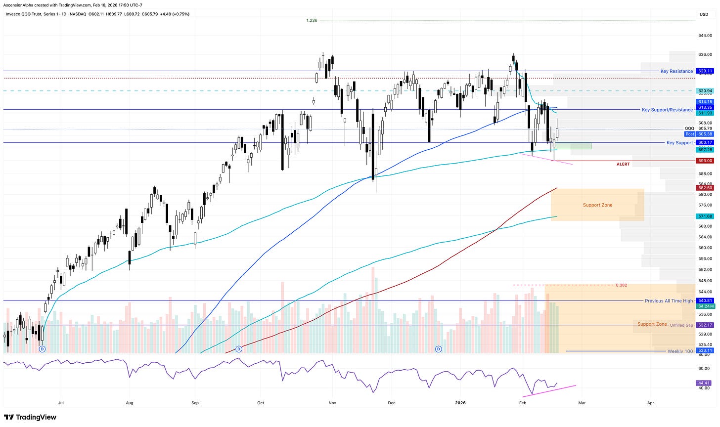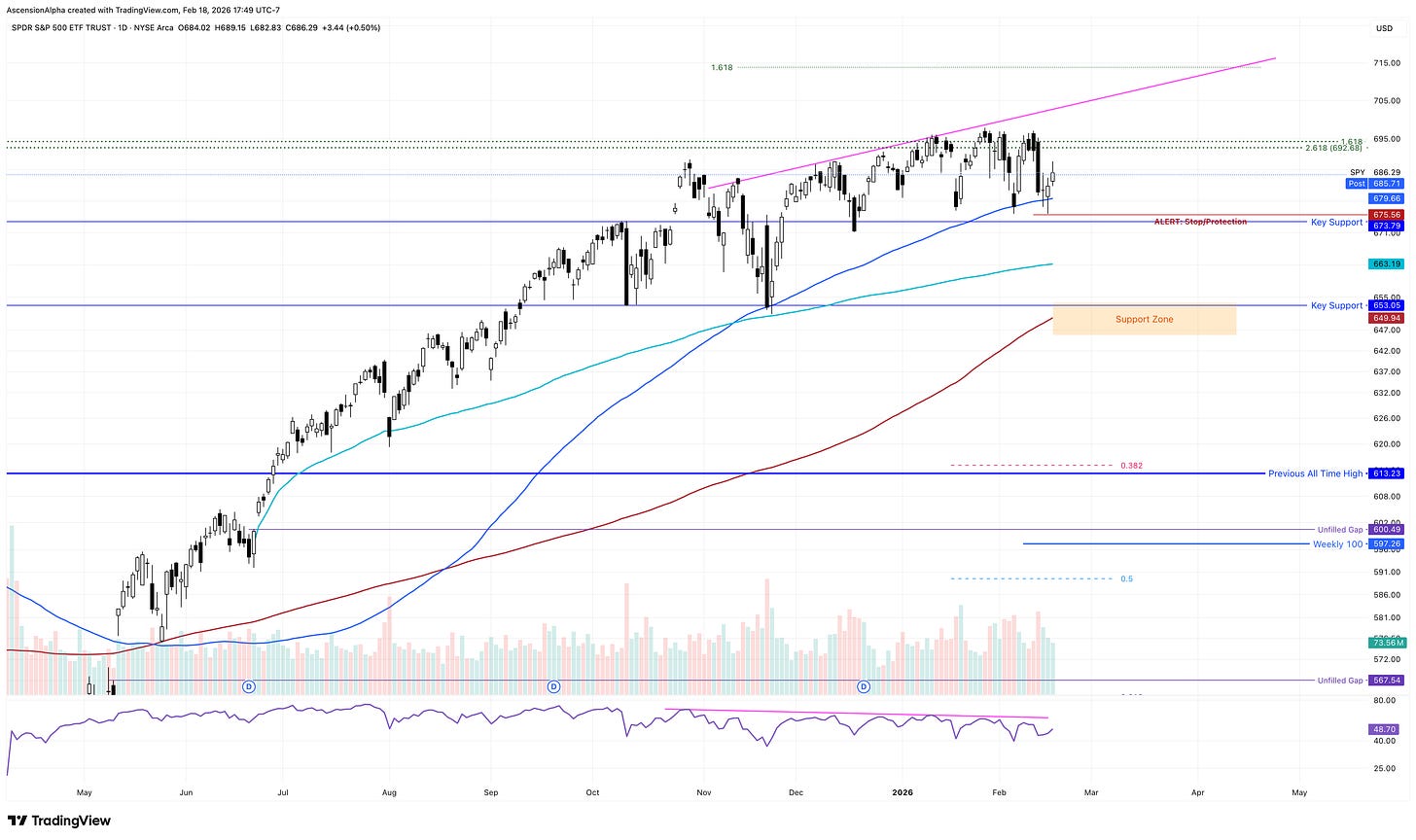 The key supports we are watching have held firm so far. SPY respected the 100-day SMA, QQQ defended the February 5th low (despite a wick below it on Tuesday), RSP stayed above $200, and DIA held the $491 zone. As long as these levels continue to act as support, there’s little reason to anticipate an immediate, more aggressive downside move.
